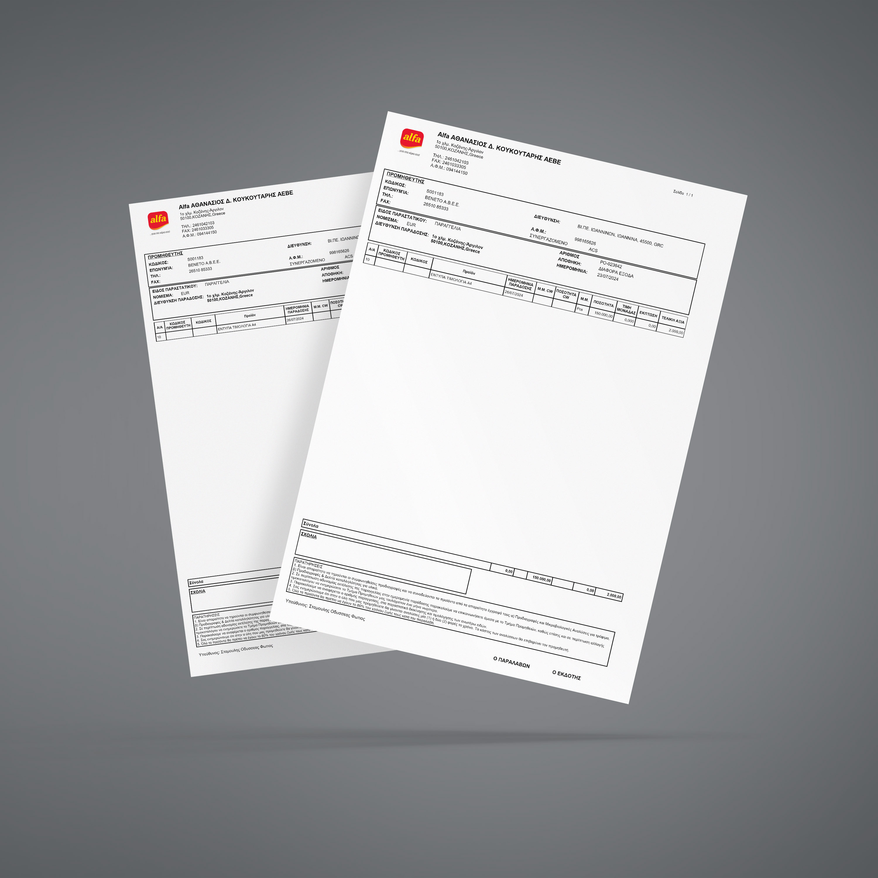 Αναλαμβάνουμε τιμολόγια, διπλότυπα, εισιτήρια, κουπόνια και custom φόρμες, με παραγωγή σε ενιαίο στάδιο για απόλυτη ακρίβεια και συνέπεια.